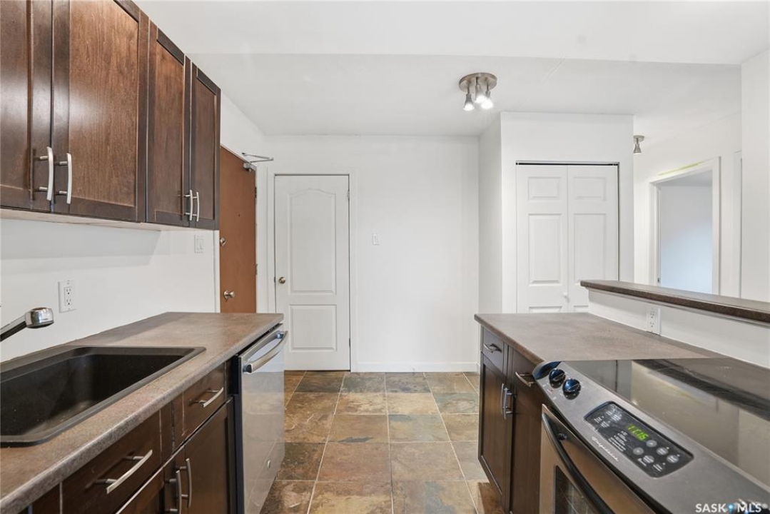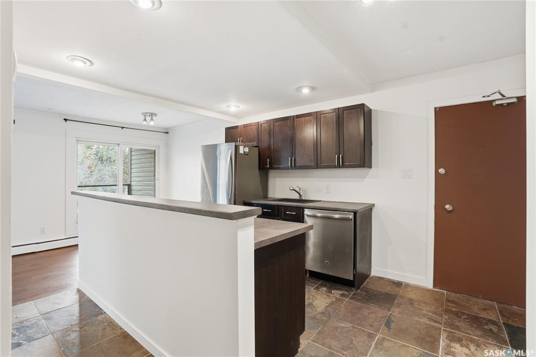 Welcome to this lovely top floor corner unit at Caswell Arms in Caswell Hill. The layout is very functional with an open concept kitchen and spacious living room. The dining area features a patio door leading to the balcony. There are 2 large bedrooms, one having a walk in closet, and a full 4 piece bathroom. The storage room has in suite laundry, and there is shared laundry on the ground floor. This unit comes with on parking stall. This building is well maintained and has a new boiler as well as new paint and flooring in the hallways. This great condo is ready for new owners to call it home! Call your REALTOR ® to view today.