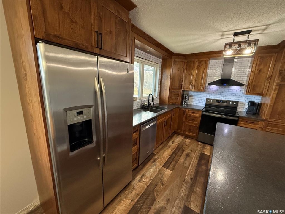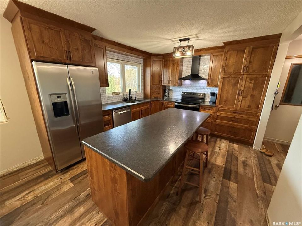 Acreage living and only minutes from town! This acreage will be sure to check off all the boxes for any buyer. It offers a newly updated kitchen, 2 car attached garage, 24 x 50 barn & 50 x 100 Quonset PLUS no gravel driving to access it!! This acreage is just off Highway #13 and only 5 short minutes to Manor. The home has had a lot of recent updates starting with the new modern kitchen. The cupboards are stunning, subway backsplash and modern appliances. There is a large island with additional seating. The kitchen is open to the dining room and flows right into the spacious living room. The flooring has been recently replaced with lino that looks likes hardwood. Down the hallway are 2 good size bedrooms, the 4 piece bathroom and primary bedroom. Just off the garage is your main floor laundry and a 2 piece bathroom. Downstairs offers 2 bedrooms that are temporary and a large open concept family room. Updates to the home include: New water line from house to barn in 2023, new water softener in 2023, new propane furnace in 2022, new windows in 2022, new kitchen cupboards, appliances in 2024, new lino in 2024, new hot water heater in 2024, new washer & dryer in 2022. You won't want to miss out!