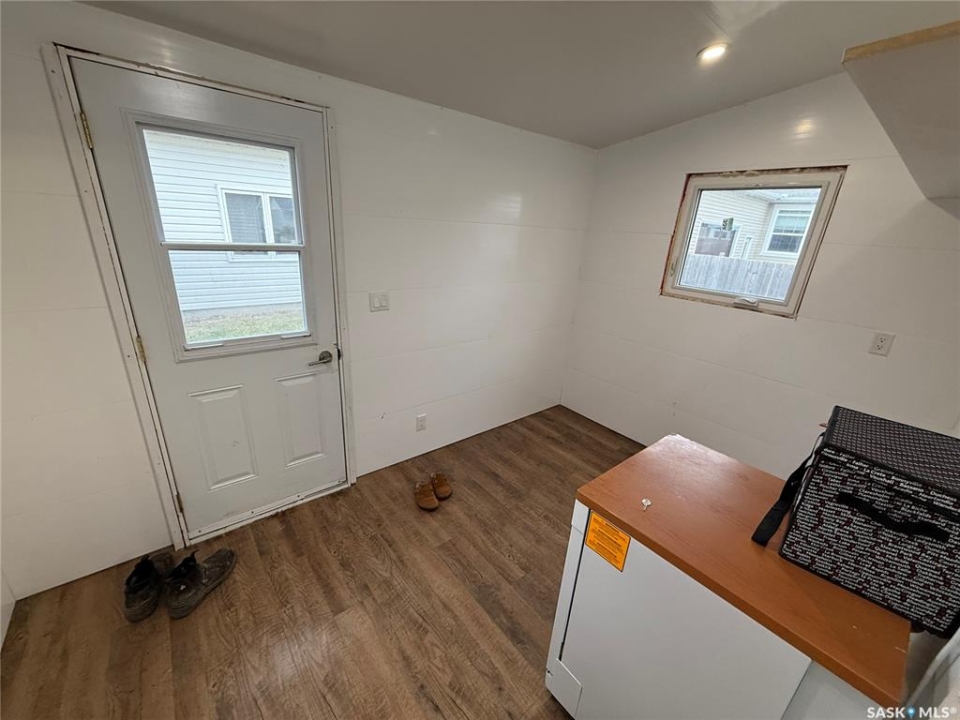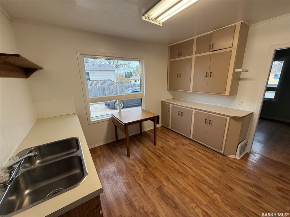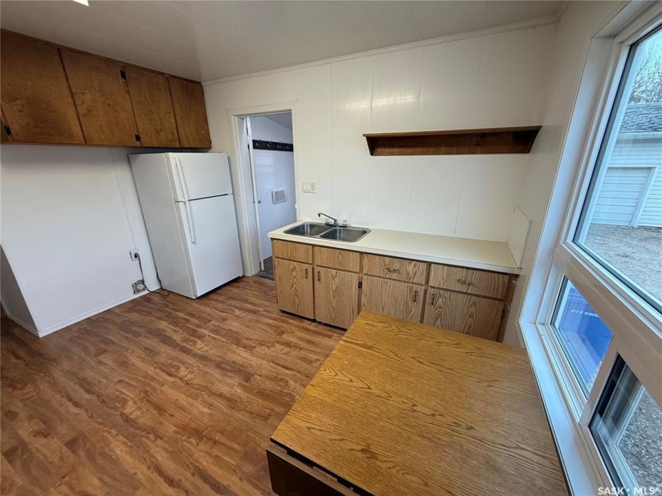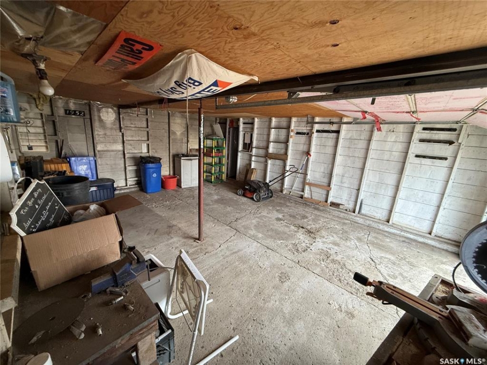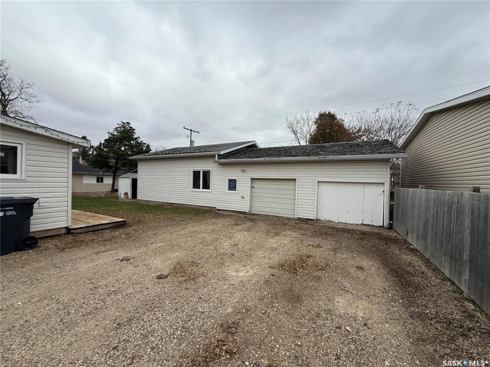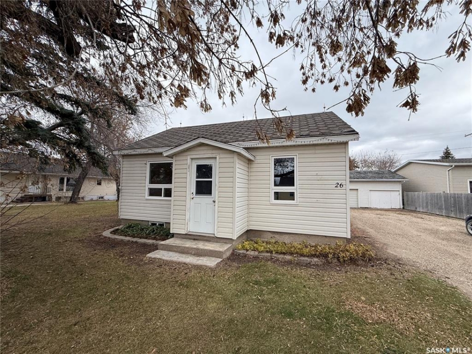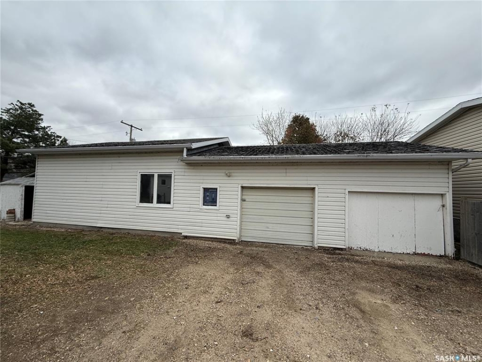 If you are looking for a house with a garage then this one is for you! This one bedroom home has a garage that will appeal to many. The home offers a spacious porch which accesses the kitchen/dining room. Just off the kitchen is the bedroom. Down the hall is the 4 piece bathroom, main floor laundry room and spacious living room. The basement has a office and would offer additional storage space. The home is located on 1.5 lots and has a 3 car detached garage that would perfect for a handy man or carpenter. This home is located 1 block from the local school and a short walk to town amenities. This property is cheaper than renting!
