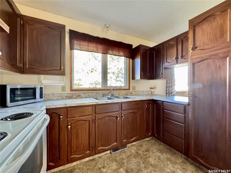 Welcome to a home that's as charming as it is practical! This four-bedroom, two-bath gem on the southwest edge of Langenburg is all about family living with a fun, trendy twist. Situated just a quick bike ride from the town's baseball diamonds and right across from a children's playground, the location is perfect for active families. Step inside and you'll notice the curb appeal right away: not just updated shingles, but also fresh siding and a tasteful rock imitation accent on the front that gives this home its extra flair. Most windows are upgraded to PVC, ensuring energy efficiency, and the attached single garage offers direct access for ultimate convenience. On the main floor, you'll find three bedrooms—one currently serving as a laundry room, but easily converted back to a bedroom if needed. Downstairs is your open canvas, featuring a fourth bedroom, a second bathroom, a high-efficiency furnace, central air conditioning, an updated water heater, a spacious cold storage room, and even a basement workshop for any woodworking enthusiasts. But what truly sets this property apart is its history of single-family ownership. Lovingly maintained by its original owners, this home radiates pride of ownership in every nook and cranny. If you're looking for a well-loved family property with modern comfort, trendy curb appeal, and a great location, 221 River Heights Drive is ready to welcome you home