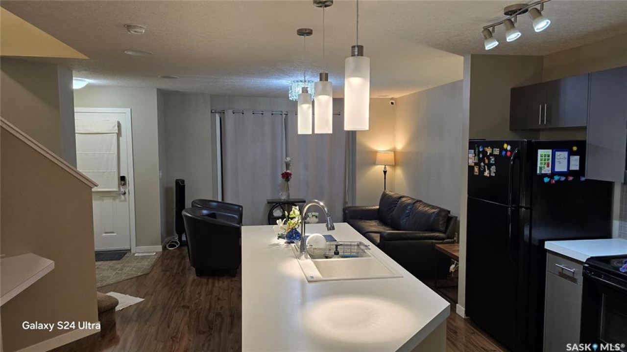This lovingly cared-for townhouse, built in 2012, shows incredibly well! It's a very spacious 1,378 square feet — and the best part is, there are no condo fees! A south-facing covered front deck welcomes you into a bright, open-concept main floor filled with natural light. The good-sized living room flows into a beautiful kitchen that features a tech space, dining area, oversized island, subway tile backsplash, and a large walk-in pantry. At the rear entrance, you'll find a conveniently located powder room tucked away for privacy, along with a built-in bench and coat hooks to help keep things organized. Upstairs, the second floor offers three spacious bedrooms and a full main bathroom. The primary bedroom faces south and includes a luxurious 4-piece ensuite and a large walk-in closet. The two additional bedrooms are generously sized and can easily fit queen-size beds. The home also features a built-in 8-zone speaker system throughout the main and upper floors. The basement has been developed to include one bedroom and an additional 3-piece bathroom, making it a perfect space for guests or extended family. All appliances and window coverings are included. Outside, you'll enjoy a great backyard deck for summer relaxation and a gravel parking pad with room for a future garage. Call your listing agent to view this beautiful home today!