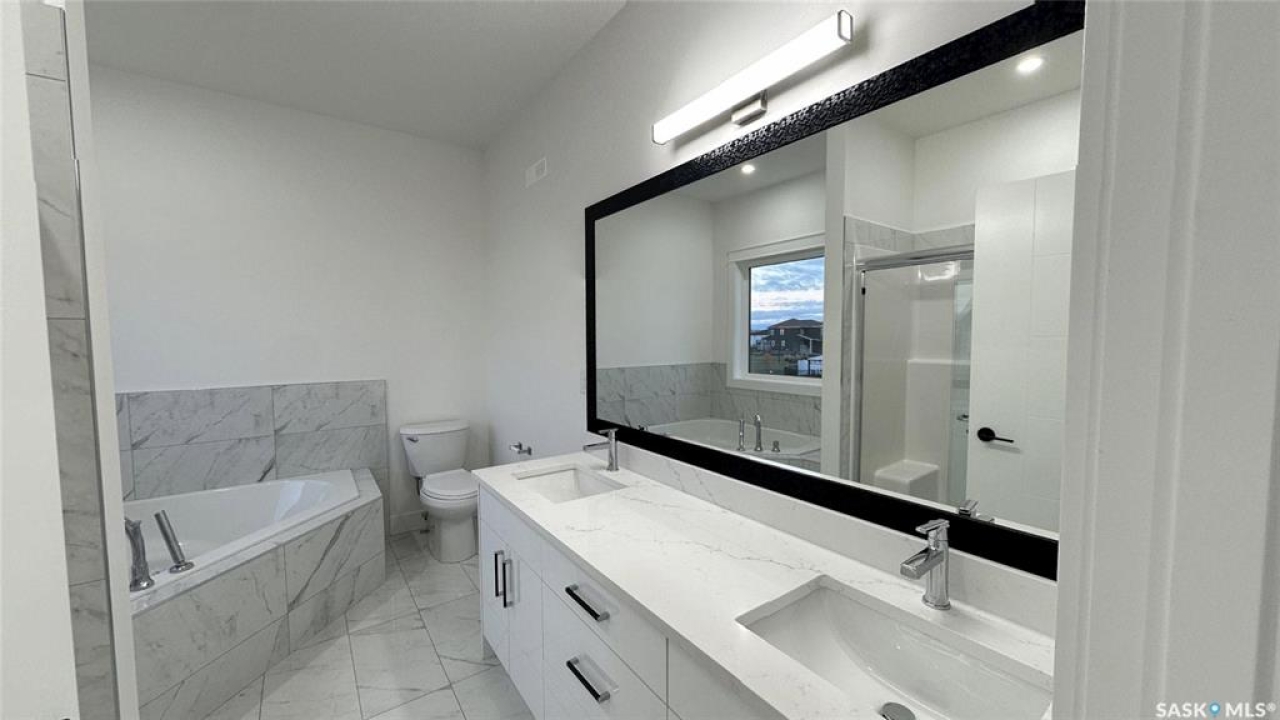 Welcome to this gorgeous 2 story home in Aspen Ridge, boasting 2136 SQFT of well lit space. The exterior modern design features Hardie board, stucco & stone, giving this home an elegant & distinct look. As you are welcomed into the foyer you will be impressed with the calacatta ceramic tiles & the huge space. There is a cozy bedroom adjacent to a 4 piece bathroom. The main floor also features an open concept living/kitchen/ & huge dinning space. This upscale kitchen boasts soft close, high gloss, infinity cabinets which are contrasted with the back-splash & the slick black pendant lights above the island. For those who like to cook, the pro-grade stainless steel range-top canopy is vented outside & adds to the beauty of this kitchen. 2 sets of stainless steel appliances are included but the main suite refrigerator features French doors with ice & water dispenser. Second floor will amaze you with 4 bedrooms plus a large bonus room, & an extra large laundry for additional storage. The HUGE master bedroom features a large walk-in closet & a 5 piece en-suite with his & hers vanity sink. In addition there is a spacious 4 piece bathroom. Quartz countertop can be seen throughout the owner suite along with calacatta ceramic tiles in all the bathrooms. The basement features a 2 bedrooms legal suite which will earn a monthly rent in addition to the buyer of this home receiving the Secondary Suite Incentive(SSI) up to 35% of the construction cost of the suite. See the 3D virtual tour and book a viewing today.