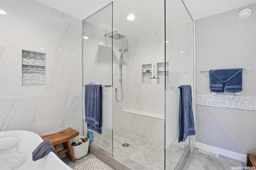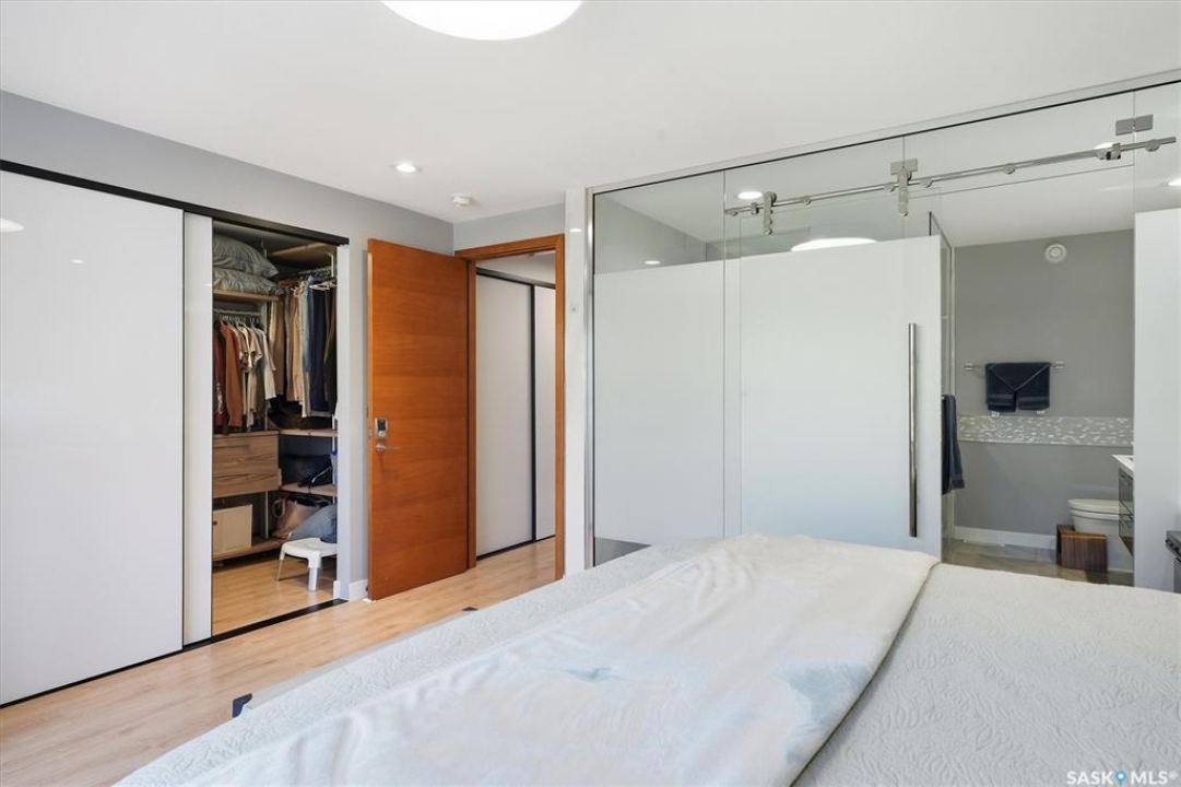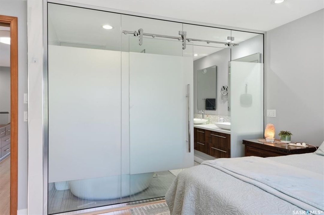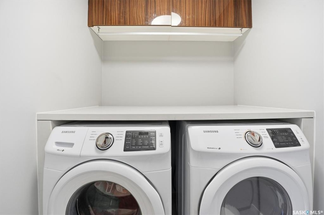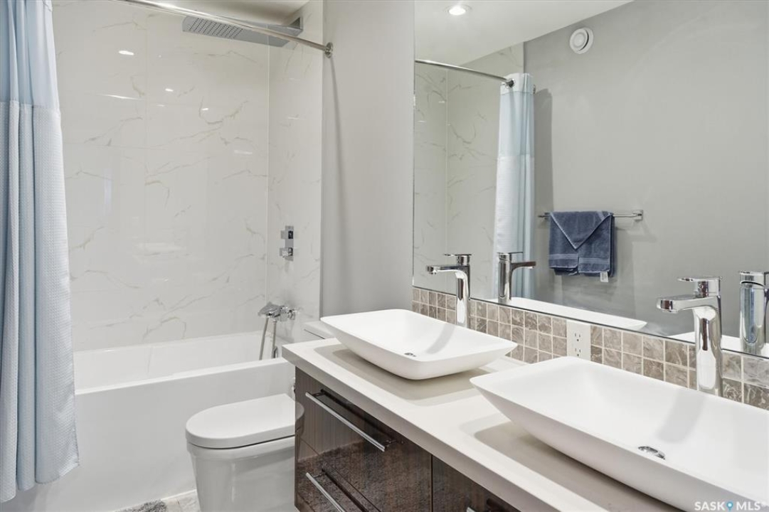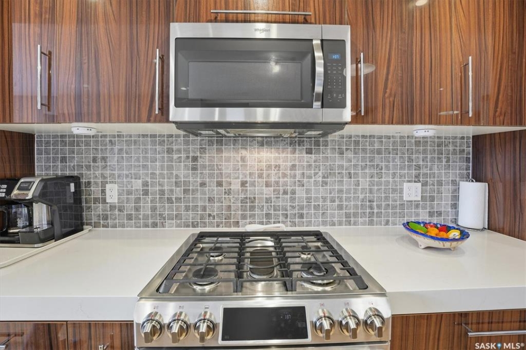 Welcome to 1106 7th St E. This stunning 1,897 sq. ft. semi-detached two-storey offers modern style and exceptional craftsmanship in the established Haultain neighbourhood. The bright, open concept main floor features 9-ft ceilings, large windows, and a stylish electric fireplace with built-in shelving. The chef's kitchen boasts high gloss cabinets, a massive quartz island, tile backsplash, and stainless steel appliances including a gas range. French doors off the dining area lead to a south-facing, maintenance-free deck and an insulated double detached garage. Upstairs, the primary suite impresses with a walk-in closet and spa-like 5-pc ensuite featuring a soaker tub, glass shower, and double sinks. Two more spacious bedrooms, a 5-pc main bath, and 2nd floor laundry complete this floor. Additional features include no carpet, custom closet organizers, open-tread staircase, pot lighting, and a side entry to the basement with 9-ft ceilings ready for development and a zeroscape yard featuring artificial turf in the front and a custom paving stone patio in the back. Call for your private showing today!!