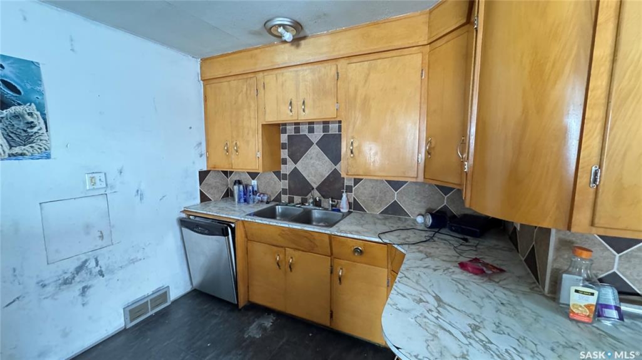 Affordable 2-BEDROOM BUNGALOW for Sale in KENASTON, Saskatchewan. Discover the potential of this bungalow for sale at 501 2ND STREET in Kenaston, SK - just a short 55-minute drive SOUTH OF SASKATOON on Highway 11. Built in 1954, this 896 sq ft home sits on a generous 50' x 132' lot and includes a SINGLE ATTACHED GARAGE. Inside, the home offers two bedrooms (one without a closet), a 3-PIECE BATHROOM, and a practical floor plan with SEVERAL NEWER WINDOWS already installed. The back porch provides additional seasonal living space (unheated), perfect for storage. The basement is open for development, giving you the chance to create extra living space, add bedrooms, or build that perfect family room or workshop. This home does need some TLC, making it a great opportunity for FIRST TIME HOME BUYERS, investors, or anyone looking for a fixer-upper with potential. Whether you're searching for a starter home in Saskatchewan, an affordable property near Saskatoon, or a project to make your own, this bungalow in Kenaston is worth a look.
