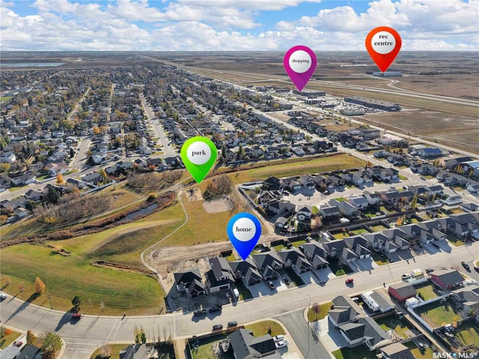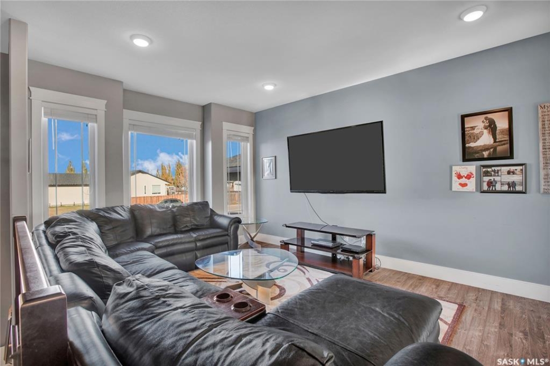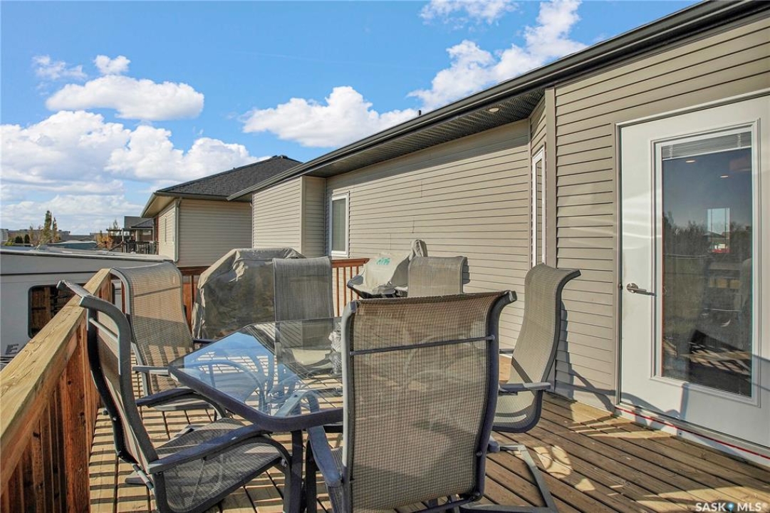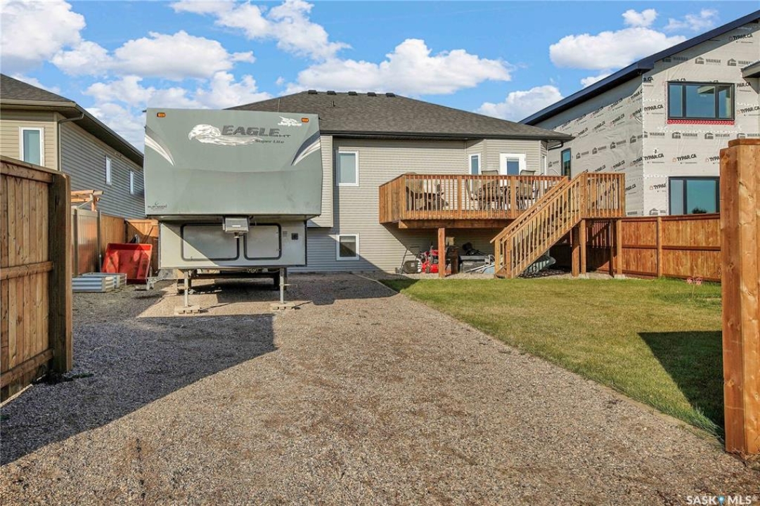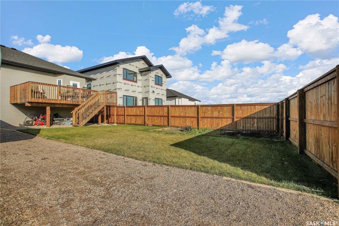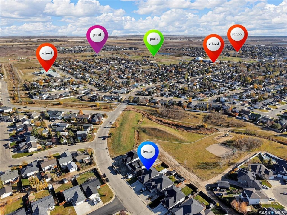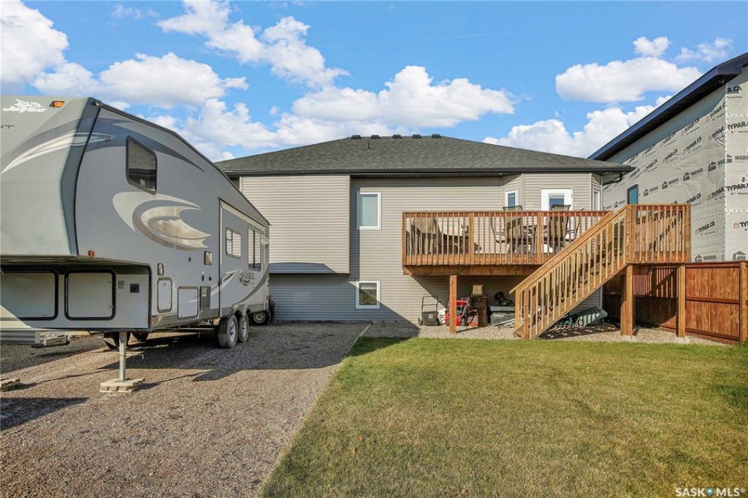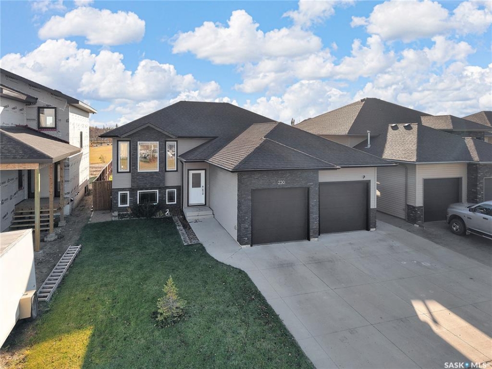 Welcome to 230 Baycroft Drive Martensville SK – A Perfect Blend of Comfort, Style & Location. Situated on a 52 x 131 lot, home backs to green space & offers a harmonious blend of everyday functionality. The main floor boasts a bright, open-concept layout enhanced by vaulted ceilings, large south facing windows that flood the space with natural light. The large foyer with closet and direct entrance to attached finished garage welcomes you to the home. A modern kitchen anchors the home, complete with ample cabinetry, a central island, walk in pantry and seamless flow into the dining and living areas perfect for both entertaining and day-to-day living. The spacious primary bedroom features a walk-in closet and a private 4-piece ensuite with walk in shower as well as a soaker tub, across the hallway 2 additional bedroom and another 4 piece bath complete the main level. The basement expands your living space with with additional 2 bedrooms, a full 4 pce bathroom, an undeveloped open space for a family room generous family/recreation area and ample storage offering flexible options for growing families, guests, or multi-generational living. Step into the backyard and unwind on the large deck within a fenced yard perfect for summer gatherings or quiet evenings outdoors. Additional features include central air conditioning, a double attached garage. Step outside the back yard and you enter North Hills park with tobogganing hill, walking trails, ball diamond and playground equipment. The home is only 3 blocks to elementary school and neighborhood amenities.