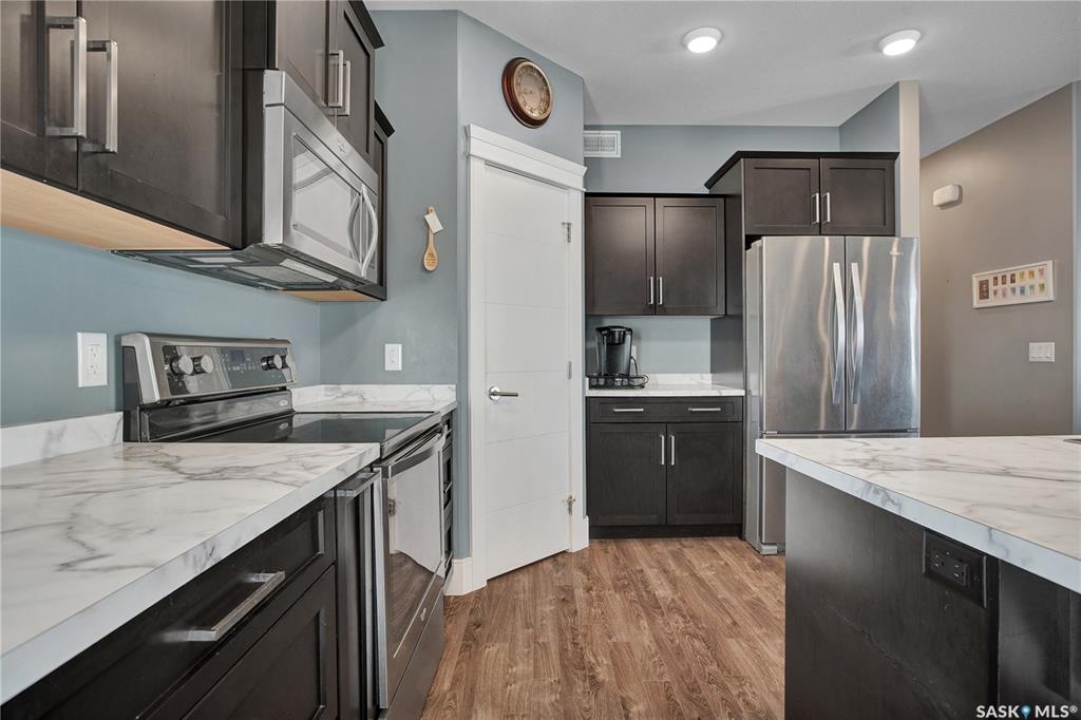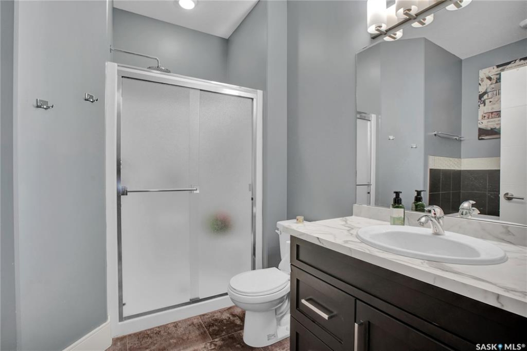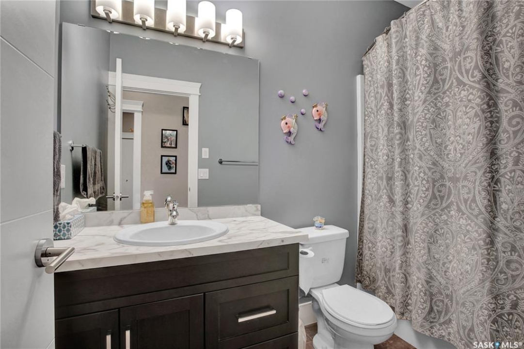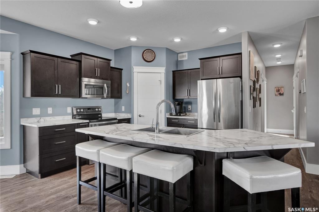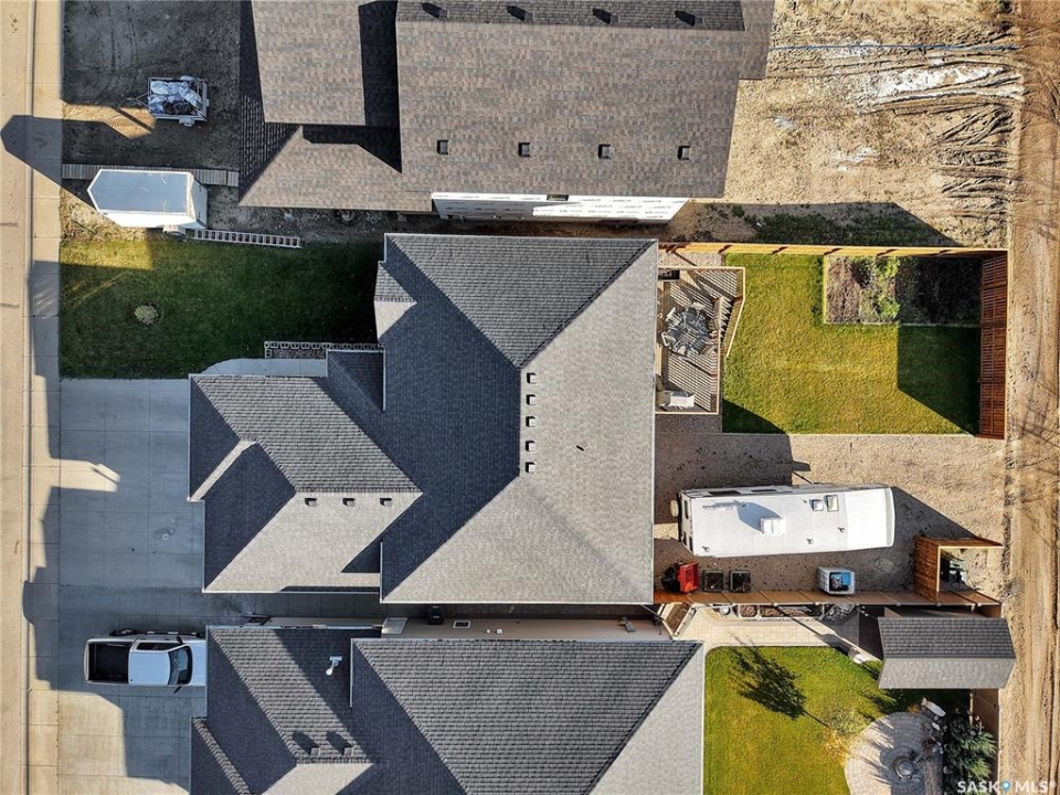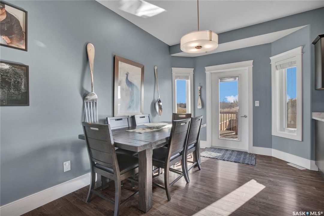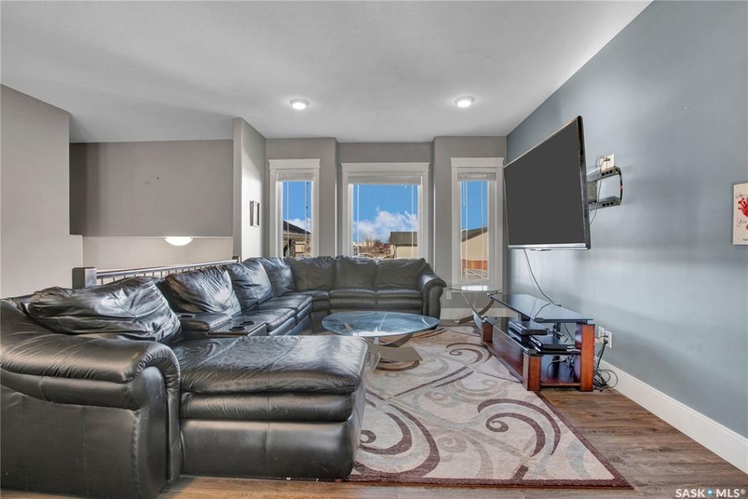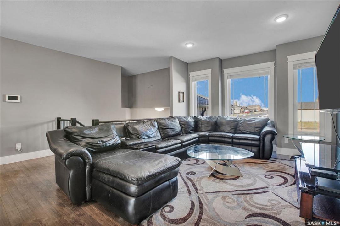 Welcome to 230 Baycroft Drive Martensville SK – A Perfect Blend of Comfort, Style & Location. Situated on a 52 x 131 lot, home backs to green space & offers a harmonious blend of everyday functionality. The main floor boasts a bright, open-concept layout enhanced by vaulted ceilings, large south facing windows that flood the space with natural light. The large foyer with closet and direct entrance to attached finished garage welcomes you to the home. A modern kitchen anchors the home, complete with ample cabinetry, a central island, walk in pantry and seamless flow into the dining and living areas perfect for both entertaining and day-to-day living. The spacious primary bedroom features a walk-in closet and a private 4-piece ensuite with walk in shower as well as a soaker tub, across the hallway 2 additional bedroom and another 4 piece bath complete the main level. The basement expands your living space with with additional 2 bedrooms, a full 4 pce bathroom, an undeveloped open space for a family room generous family/recreation area and ample storage offering flexible options for growing families, guests, or multi-generational living. Step into the backyard and unwind on the large deck within a fenced yard perfect for summer gatherings or quiet evenings outdoors. Additional features include central air conditioning, a double attached garage. Step outside the back yard and you enter North Hills park with tobogganing hill, walking trails, ball diamond and playground equipment. The home is only 3 blocks to elementary school and neighborhood amenities.