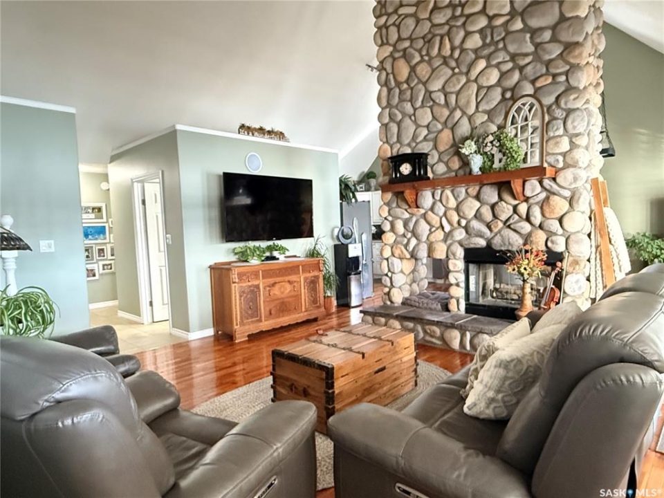 This isn't just a lake home—it's a lifestyle. A return to slow mornings. A place where coffee tastes better on the deck. A home that invites you—and those you love—to stay awhile. Tucked along the shoreline of Crooked Lake, 18 Lakeview Lane offers more than a home—it offers a slower, simpler way of living. Built in 2003 and beautifully cared for, this lakefront bungalow captures the essence of year-round lake life where comfort, calm, and connection come naturally. From the moment you arrive, you will notice every detail reflects the care and attention this home has received. Log-profile siding, composite decking with glass railings, and peaceful water views create a setting that feels both relaxing and inviting. Inside, vaulted ceilings and a dual-sided stone wood-burning fireplace anchor the open-concept living space, where cherry hardwood floors and custom California shutters create a soft natural light making every day feel like a retreat. The kitchen blends warmth and function with upgraded cabinetry, solid-surface counters, stainless steel appliances, and a built-in beverage fridge. The renovated pantry offers extra storage with cabinetry towers and an upright freezer—ideal for everyday living or hosting lakeside gatherings. Three comfortable bedrooms and two full bathrooms complete the home, while the heated, insulated 364 sq ft converted boathouse adds an inspired bonus space for a gym, studio, or guest area. Step outside to the covered verandah with a six-person hot tub and take in the lake views, or wander to the lower deck that feels like you're right on the water. Behind the home, a concrete patio and mature landscaping create another space to unwind.