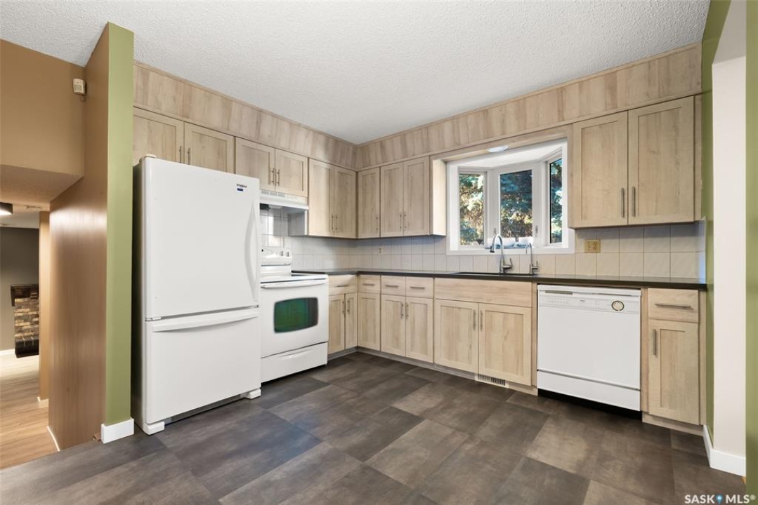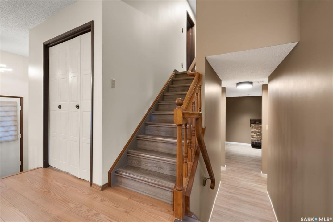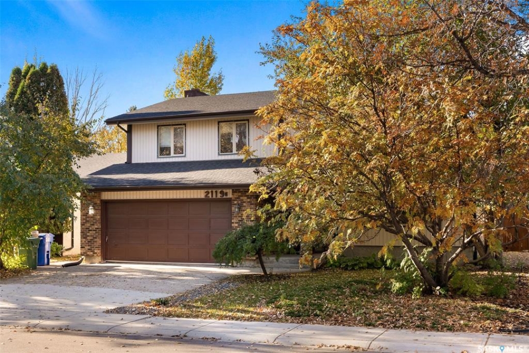 Welcome to 2119 Elderkin Dr E in Gardiner Park area. This 2 Storey split home is the perfect family home offering 1618 sq ft of living space with 4 bedrooms and 3 bathrooms and a double attached garage. Close to walking paths, across the street from park and tennis courts, easy access to all east end amenities & the ring road, steps away from a bus stop, and close too many elementary schools. This home has been well cared for and has many features and upgrades which include: *Spacious front foyer* Living room that flows into formal dining room* Added pot lights in living room* Updated kitchen with additional eating area* Soft close cabinet doors* Quartz countertop* New linoleum floor* Appliances included* Kitchen window overlooks backyard which is nice to watch the kids playing* A few steps down lead to family room with patio doors leading to deck and private backyard* New Vinyl plank flooring throughout upstairs and Family room* Laundry room with built in cabinets* 2 piece bathroom* Direct entry from the garage* Upstairs has large master bedroom with 3 piece ensuite, new ceiling fan, and lots of closet space* 2 additional good sized bedrooms* 4 piece bathroom with new bath tub, tub surround, faucets, toilet and linoleum* Downstairs is finished with rec room, bedroom, mechanical room and lots of storage* Newer carpet in basement* High eff. furnace* Central air conditioning* Some updated windows* Good sized garage with steel beam and additional man door to the side of the house* Abundance of natural light* Beautiful private fully fenced backyard* New turf carpet on outdoor deck* And much more.... Call your Real Estate agent to book a viewing today!!