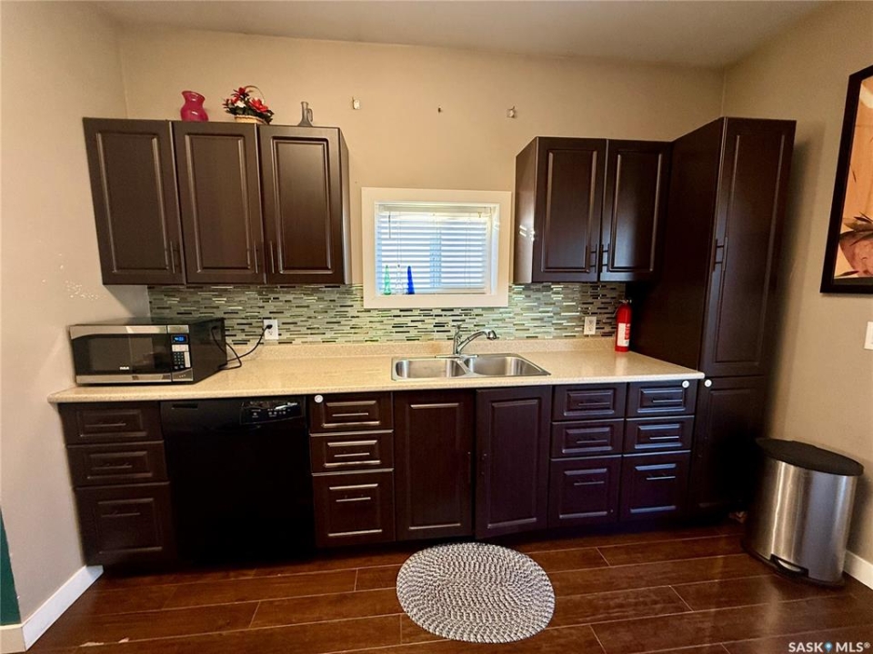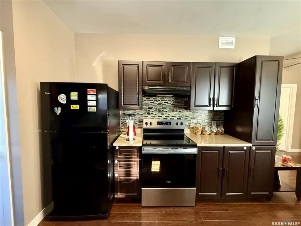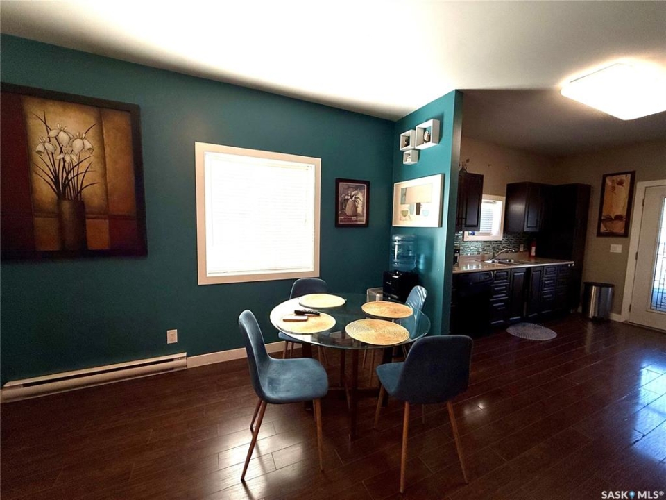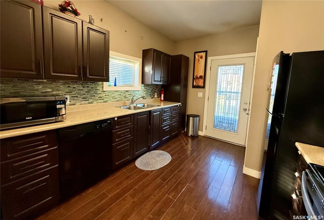 #106 7th Street West, this 960 sqft bungalow was built in 2012 and is located on a irregular shaped lot. Enter the front door directly into the great room with vaulted ceilings with lots of natural light it is open to the dining space and kitchen. The galley kitchen has plenty of cupboards and counterspace with tiled backsplash. In the kitchen is a closet with the washer and dryer. Off the kitchen is teh door to access the back deck and yard. There are two nice size bedrooms and a 4-piece bath completes the home. Storage closets are located in the hallway. Updates water heater in 2024 and stove in 2025. Large shed included. Call to book your viewing today!