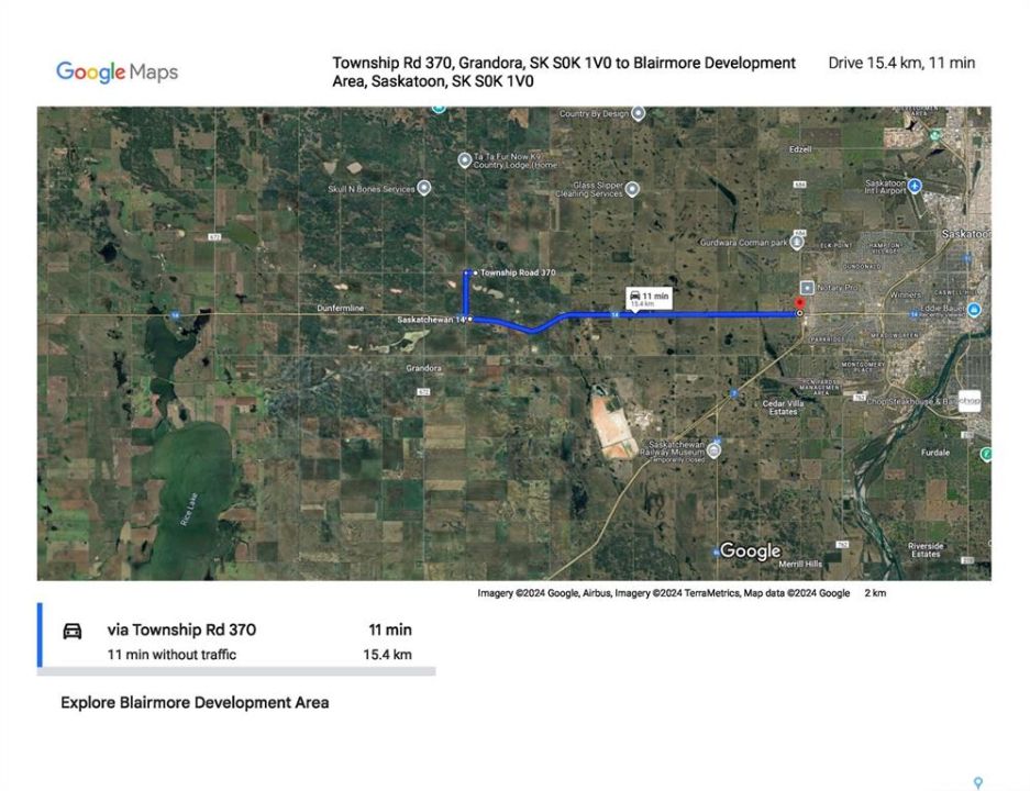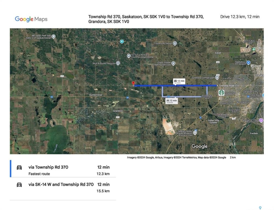 Welcome to your oasis just 13 minutes from Saskatoon with an elevated view of land for your dream home. This residential acreage is the perfect distance from the main amenities in Saskatoon and is only 3 minutes of gravel to your entrance. With two main options out of the City you can choose the #14 west and turn North on Range Road 3074 or drive straight up Township Road 370 for 13 minutes to home. This acreage is set a little higher so the view of the neighbouring land is spectacular. Imagine a walkout basement and 2.5 acres for privacy.