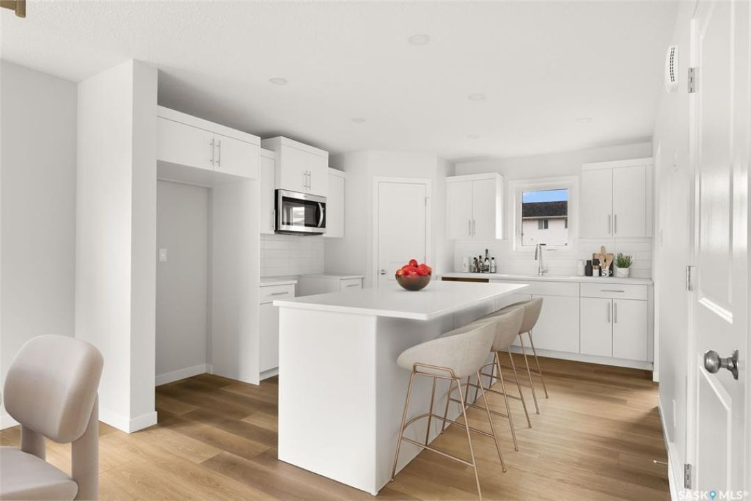 Welcome to Homes by Dream's Ava that's move in ready in Eastbrook at 5416 Nicholson Avenue. This brand new 1,443 sq. ft. single family laned home is located near shopping, restaurants, an elementary school, walking paths & parks . The open concept main floor allows for an abundance of natural light to flow through the large living room window at the front of the home, centralized dining area and the spacious L-shaped kitchen at the back of the home. The kitchen features a large centralized island that can accommodate seating and an abundance of cabinetry, quartz finished counter space and ceramic tile backsplash. There's a separate mudroom area and a 2 piece bath at the rear of the home. The 2nd floor consists of a large primary bedroom, ensuite and walk in closet. The 2nd floor also includes 2 additional bedrooms at the rear of home, a 4 piece bath and laundry. There's a side entry door and the basement is ready for future development. This home also includes a 20'x22' concrete parking pad & a DMX foundation wrap.