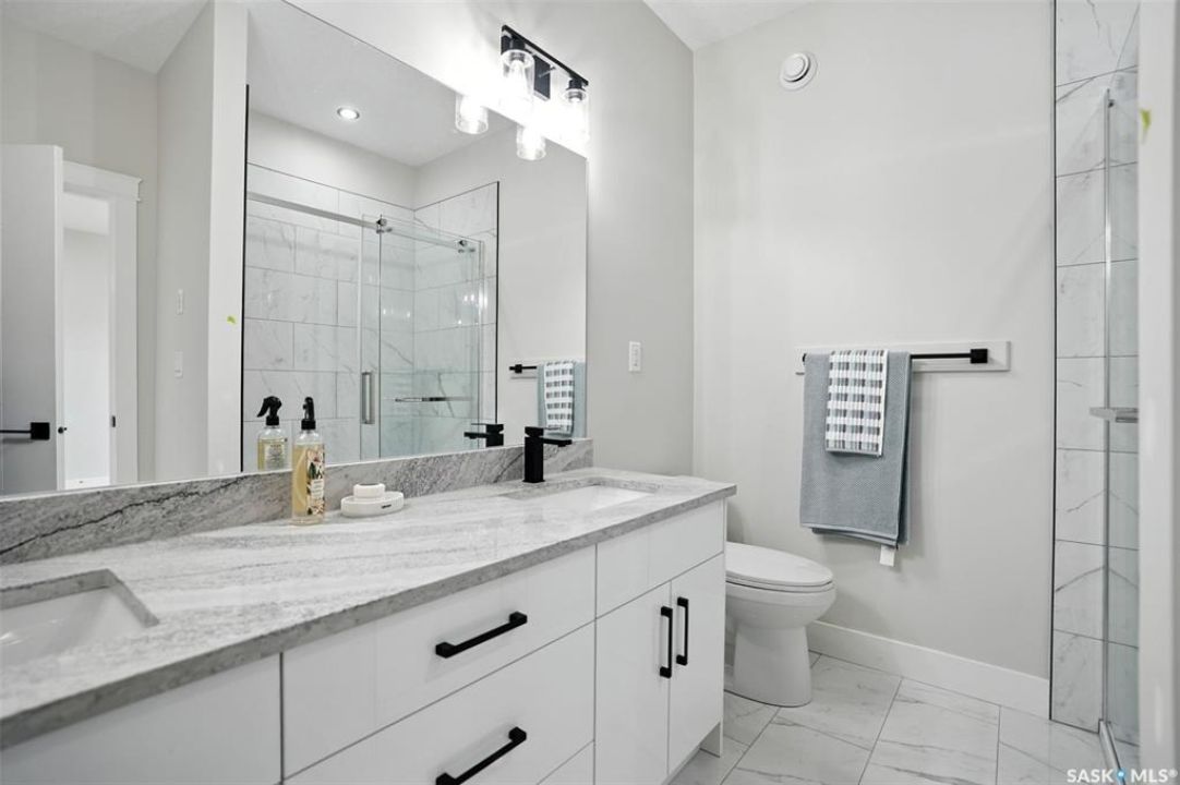 Welcome to 126 Sharma Lane - A Fully Developed Property in one of the Most Thriving Neighbourhoods of Saskatoon - Aspen Ridge. 2 Separate Furnaces, Fully Insulated Garage, Gas Line in Garage for Future Garage Heater, Natural Gas Line on the Main Floor Kitchen for Future Natural Gas Stove, 22'0"x 24'0" Garage, 10'0"x 12'0" Deck with Stairs & Aluminium Railing, Basement Including 2 Bedroom Legal Suite with all Appliances and a Family Room & Full 4-Piece Washroom on Owner's Side, STUCCO EXTERIOR with Stone Work and Much More is what this Property has to Offer. Bright & Spacious Landing Area, Spacious Living Room with 1 Electric FIREPLACE, Dining Area Overlooking the Deck & Backyard greet you upon Entering. Kitchen is located strategically to Maintain Privacy while cooking keeping your Recipes a SECRET. Main Floor also welcomes you to 2 other Good Size Bedrooms & a 4-piece Bath. 13'0"x17'6" Size Huge Master Bedrooms greets you on the Second Floor with a Walk-in Closet & a 4-piece Ensuite incorporating Standing Shower & Glass Door. Basement comes with a Separate Furnace for the 2 Bedroom Legal Suite with a Living Room, Laundry, Kitchen, 2 Good Size Bedrooms and a 4-piece Bath. Owner's Side in the Basement also incorporates a Large Family room with a 4-piece Bath. Buyers has complete options to make some selections. Close to Restaurants, Starbucks, Gas Station, Strip Mall and Future School this property Awaits it's First Time Owners. SSI Rebate will go to the BUYER .Call your Realtor Today to Book a Viewing.