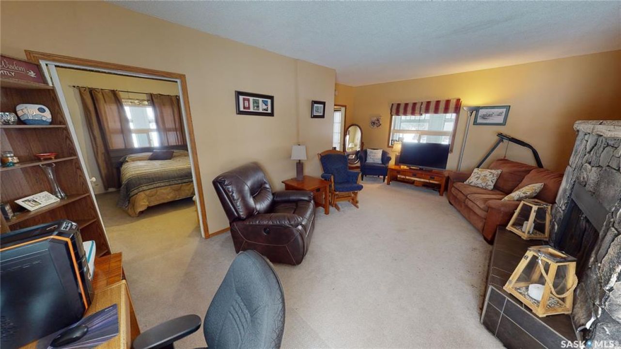 Discover the warmth and charm of this four-bedroom, 1.5 bath Character Home situated on two lots with front and back garages. Step into the inviting wraparound enclosed veranda as you enter into the house. A corner staircase leads you to the 2nd level with 3 bedrooms and a full 4pc bathroom accessible directly from two of the bedrooms. Unwind in the cozy living room complete with a wood-burning fireplace and access to the 4th Floor Bedroom on the Main Level. Proceed through the living room into the dining room and kitchen with windows facing the back yard & deck plus a back door from the kitchen leading right into the fully fenced part of the yard. The kitchen also accesses the conveniently located Laundry Room plus the floor access to the cellar that includes the Gas Furnace and other Utilities. Outside, the yard offers endless possibilities with a treated wood back deck, trees for shade, back garage & shed plus a concrete patio - perfect for a Fire Pit or other backyard activity. The North side of the property is shaded by mature trees, while a greenspace and community playground sit just across the street adding to the home's appeal and central location to the town's amenities include Hospital, K-12 School and Downtown. From the Street front there is plenty of parking on the gravel driveway, along the front fence and in front of the 16 x 24 Garage built in 1995. This home comes complete with a Fridge, Stove, Washer, Dryer, Wall Air Conditioner, Water Softener and Sump Pump. Singles Updated in 2015. Experience it all firsthand with the enclosed 3D Virtual Tour of the property's interior or contact a Realtor for a private viewing!